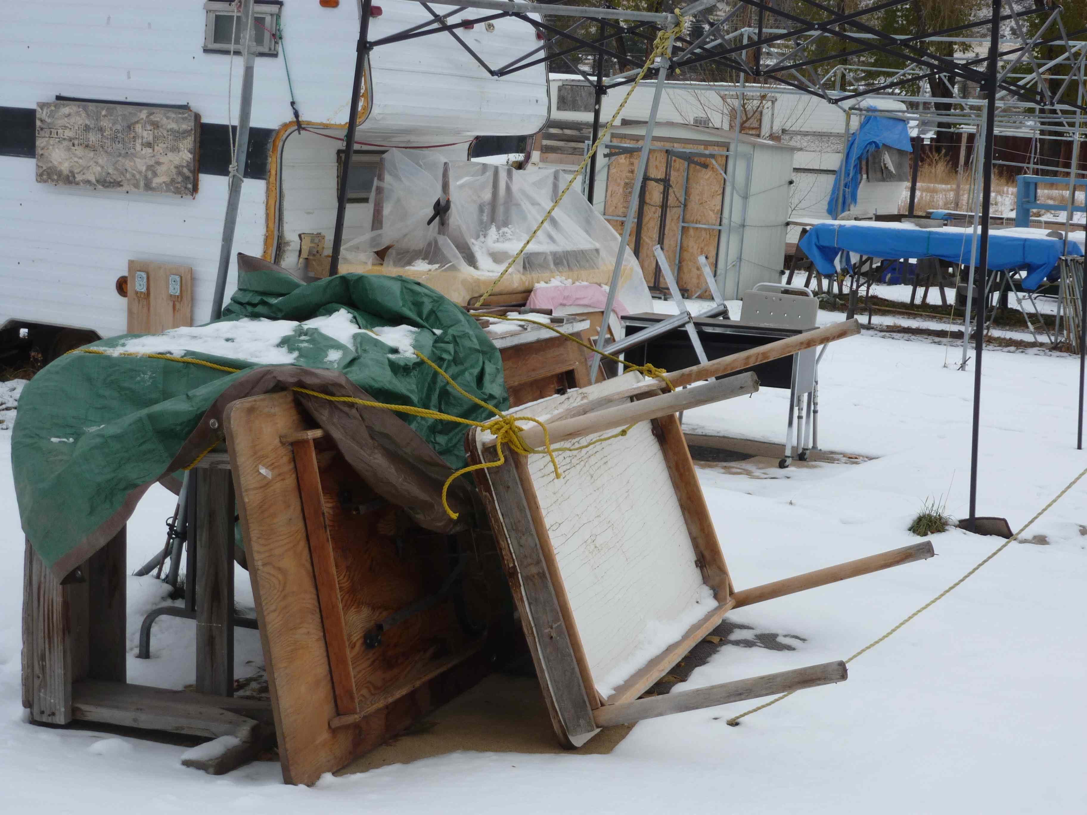 This is the consequence of a leisure economy. It doesn’t really work in the cold months. Every Sunday in the summer in Okanagan Falls, for example, a flea market is set up on a dust flat in the centre of town, but when the snow comes, the fleas go. Here it is on November 20: