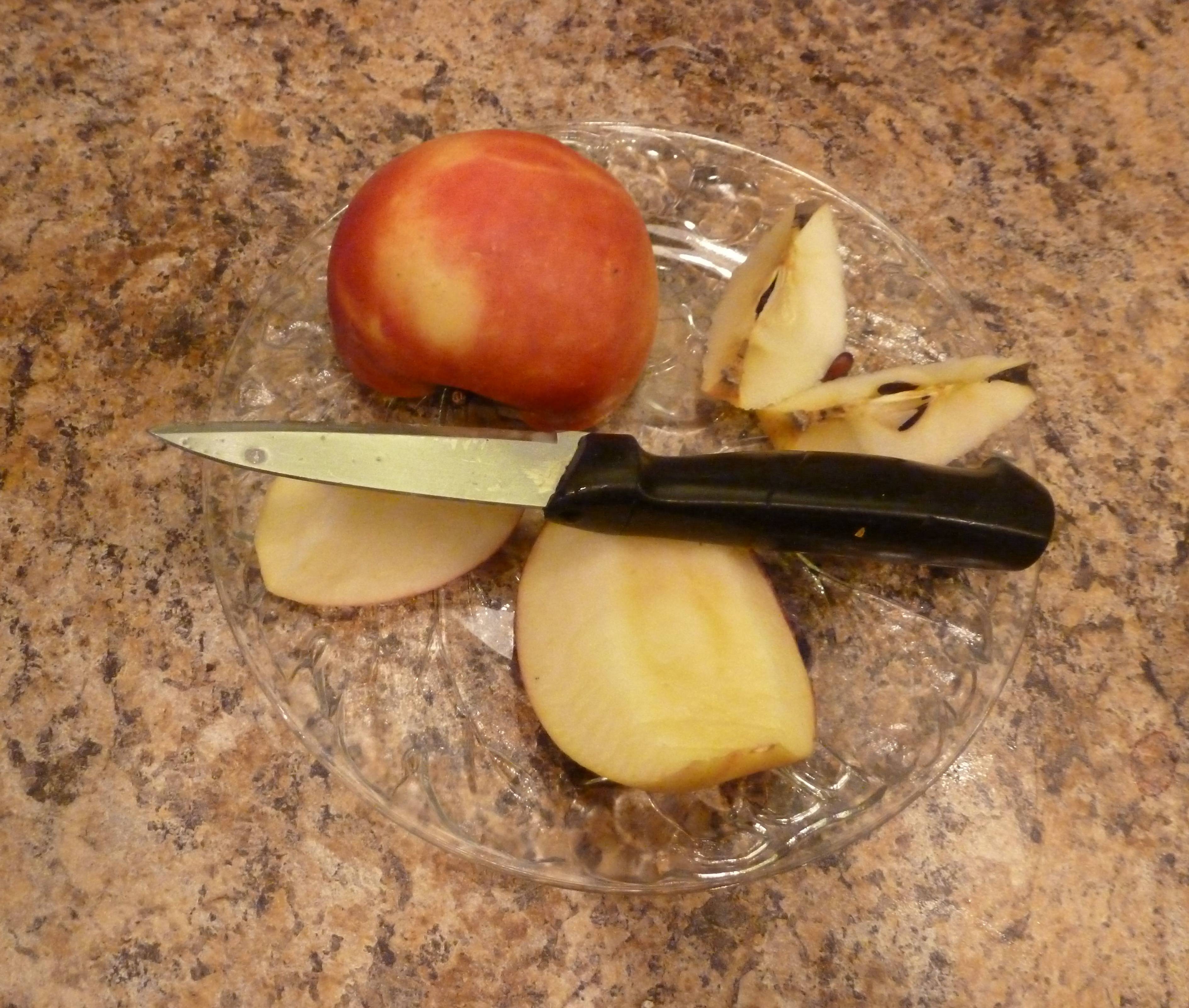 Ah, but what does it taste like? It all comes down to that, doesn’t it. Well, after a week in Safeway, and who knows how long in the packing house before that, it still had a nice solid (but not snappy) crunch, tasted most excellently of cold storage, with lingering sweetness that hadn’t yet evaporated, very low acidity, and, all in all, god I hate to say this, dull.