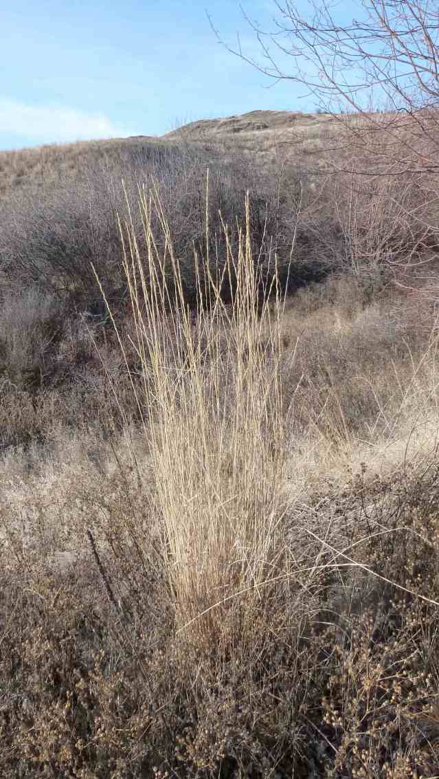 I was out on the Commonage today, south of Vernon and above Kalamalka Lake, and found some Giant Wild Rye Grass growing on the road margins of a riparian area. The tallest individuals were about two metres high, which is higher than this photographer, even with his walking shoes on. This is a stunning grass.