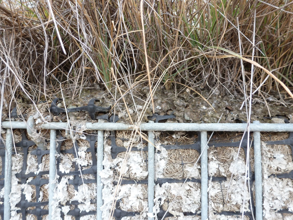 This wall of grass was built to stabilize a slope so a series of building lots could be installed up top, but it has more important things to do.