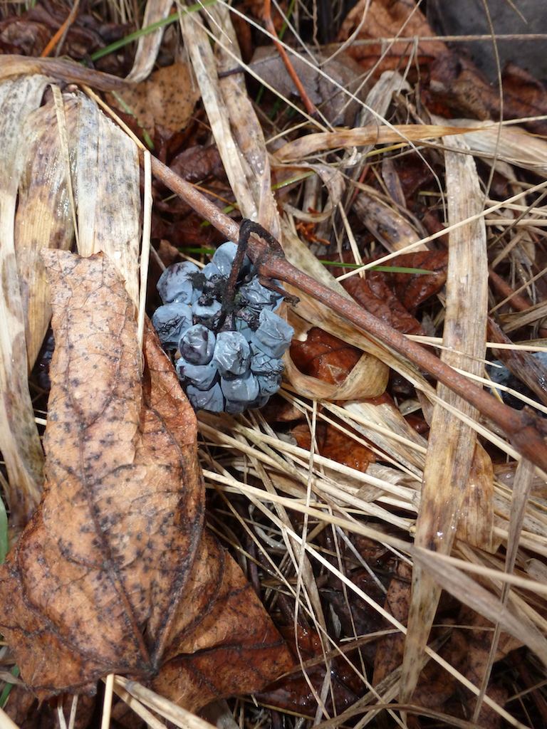 There’s not a lot of sun out on the hills these days, but what there is it finds the rocks. They bring the season forward at least a month — and, most importantly, do it when the water is still around. Close by, though, there’s another story going on. There’s still last spring to be reckoned with. Take a look at our old friends, the wild grapes on the hill: