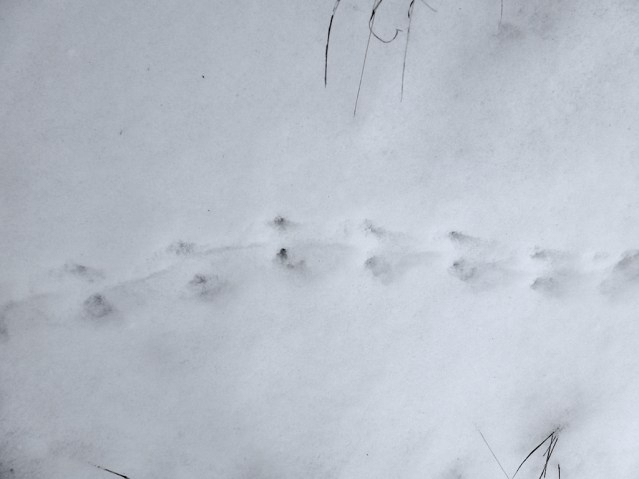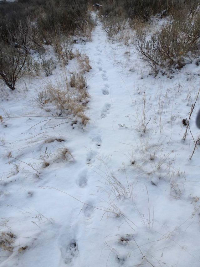 The trails of coyotes cut cross country, as they track deer and hunt voles in their gardens, and pass nightly from their dens high up into the hills, down over the falling slopes of sagebrush, through the subdivisions like smoke, and into the swamps far below in the floor of the valley, and back.