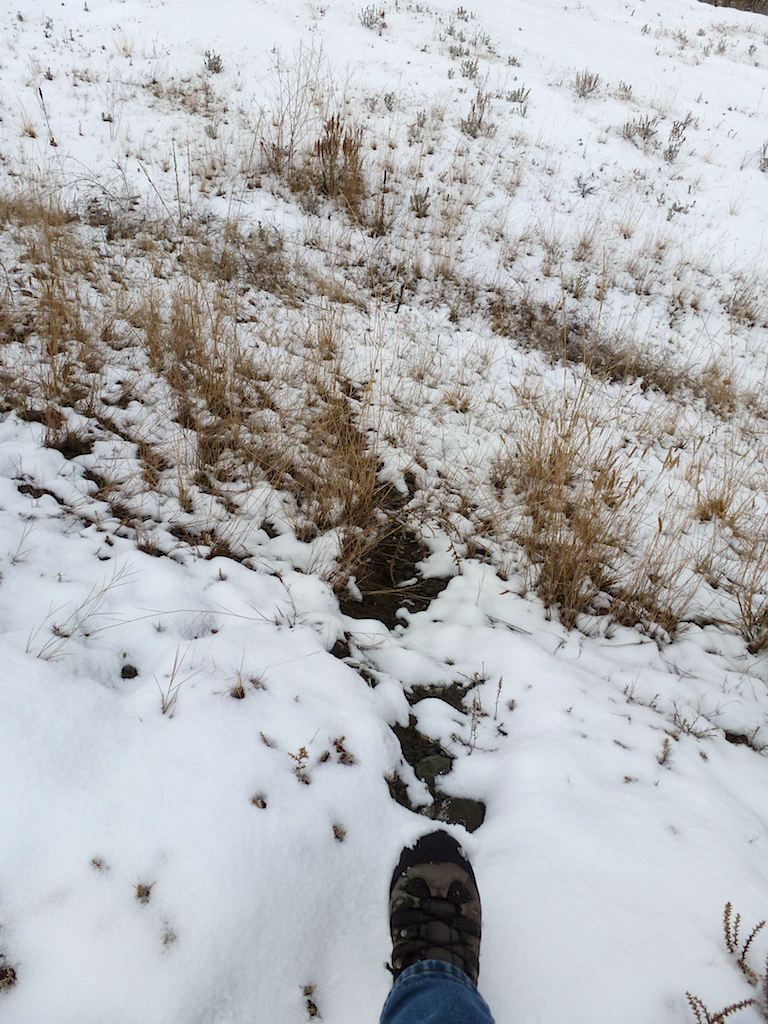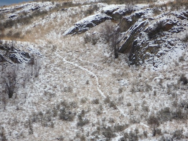 Each bunchgrass plant is an intersection between trails, a chance to go up, or forward, or down. The deer follow them all. Other creatures are weaving the land into a net here, too. Check this out: