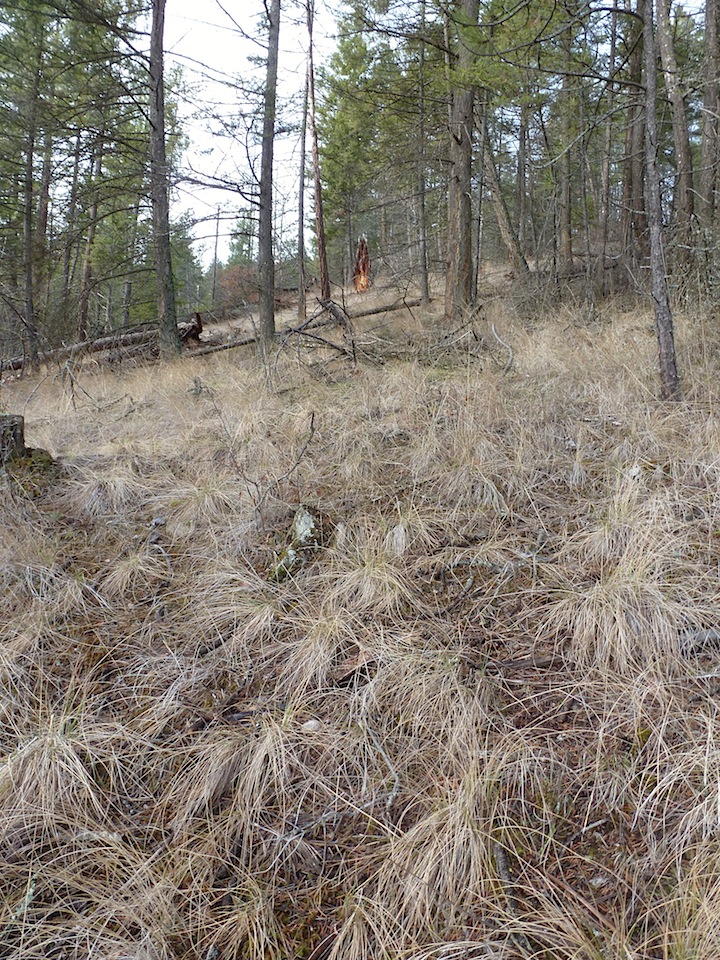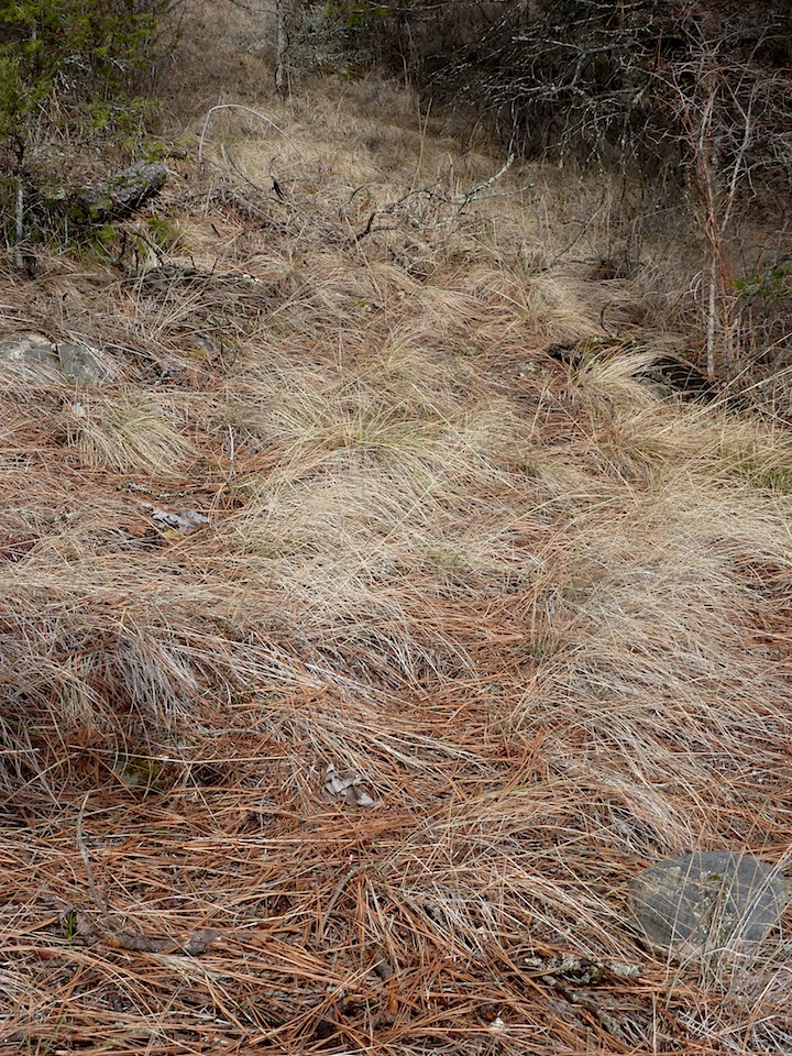 Hanging on amidst a litter of needles, twigs and wood refuse dropped from weedy ingrowth trees, but ready to reclaim the land, if giving a chance. It is amazing that the grassland has survived this long. It is obviously tougher than it looks.