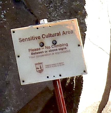 Is this an effective strategy? You be the judge. Here’s another cultural rock face, just across from the protected one, no doubt judged no longer worth protecting: