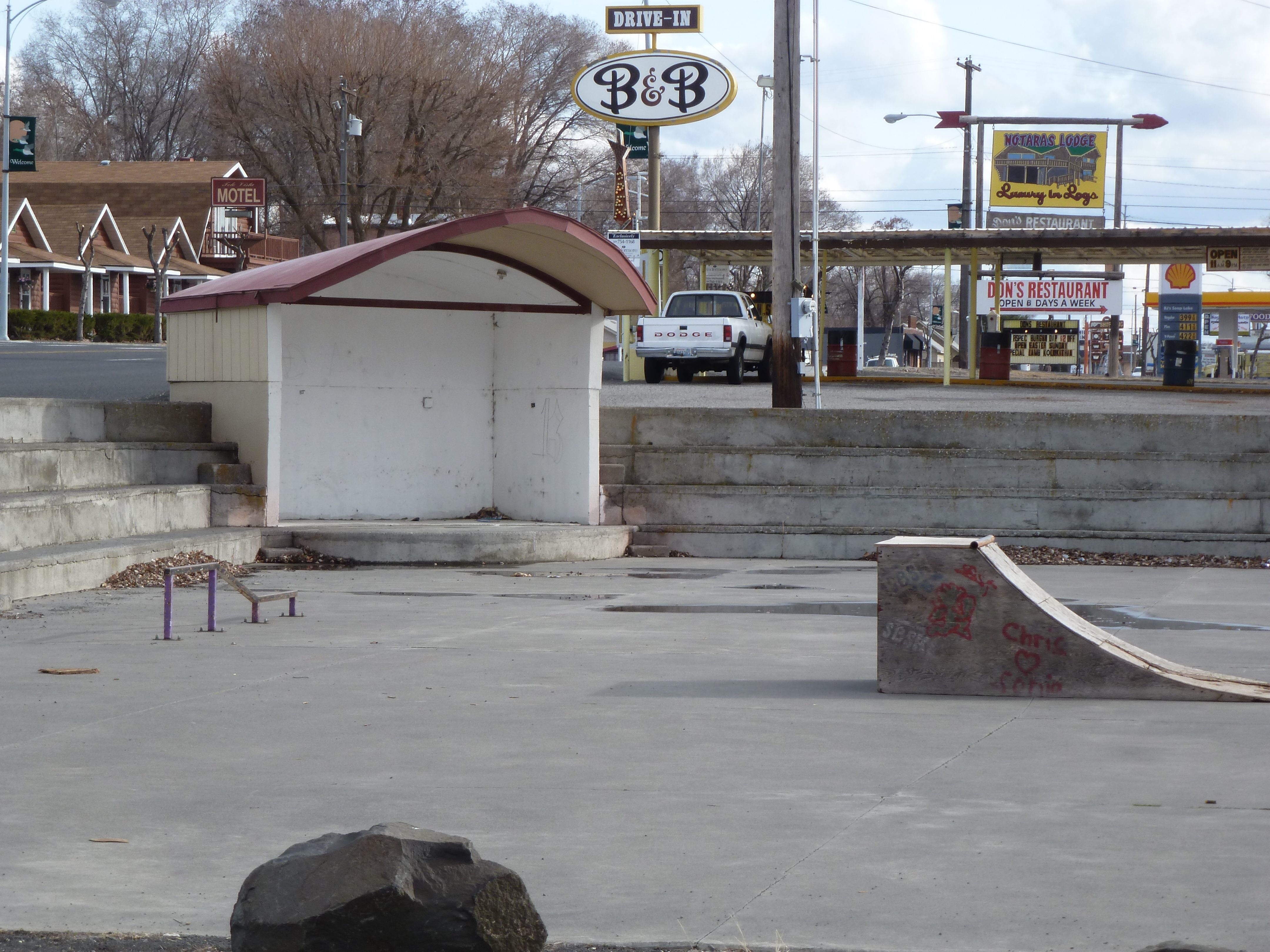 Drive In, Bandstand, Motel, Restaurant, and Skate Board Park Complex in One