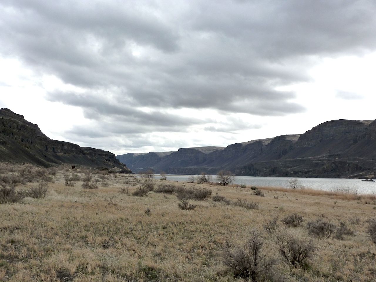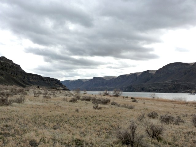 Now, to my way of thinking, ‘fun’ is a curious word to apply to a shrub steppe with some alkaline lakes, some ancient humanly-inhabited caves, rhinoceros fossils, and one of the most sacred travel routes between the Cascades and the Rockies. Fun, it seems, is a relic from the 1960s, when the Hanford reactors just a little to the south and west were chugging out the plutonium for the U.S. Cold War nuclear arsenal, and the area’s nuclear workers were pretty chipper about this area, east of the rain forests, being the New Wild West, the one that would take the spirit of the Oregon Trail into the Space Age. That’s what counted for fun in those days, plus the local (Tri-Cities, Washington) invention of the Personal Water Craft. Here’s what came of all of that understanding that history was a mighty fun thing …