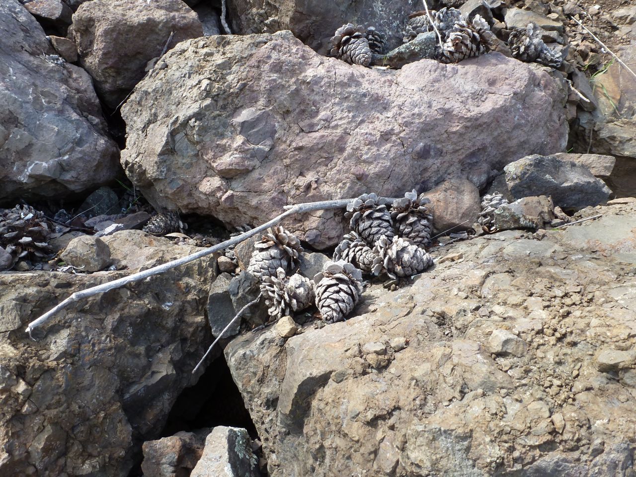 And gravity does all the gathering work, too. Those pines in the Deep Creek gully might be trying to tell us something. These cones sell for big money in craft shops. They’re worth way more than peaches.