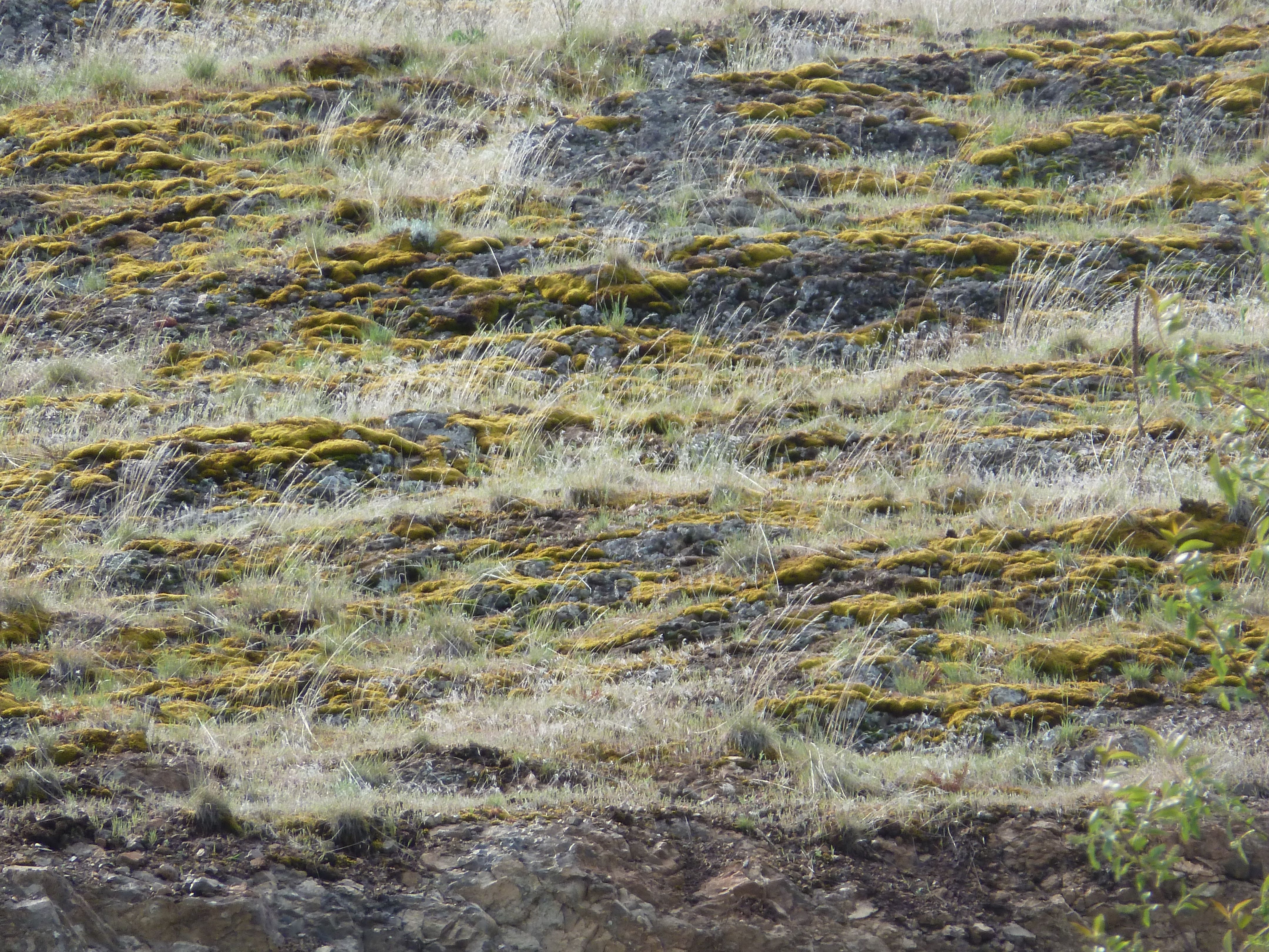 ..from a water standpoint. These mosses and grasses are living off of water as it flows down over rock. They manage it by catching it within themselves.Peaches are gully plants. This ain’t their thing.Turtle Mountain.