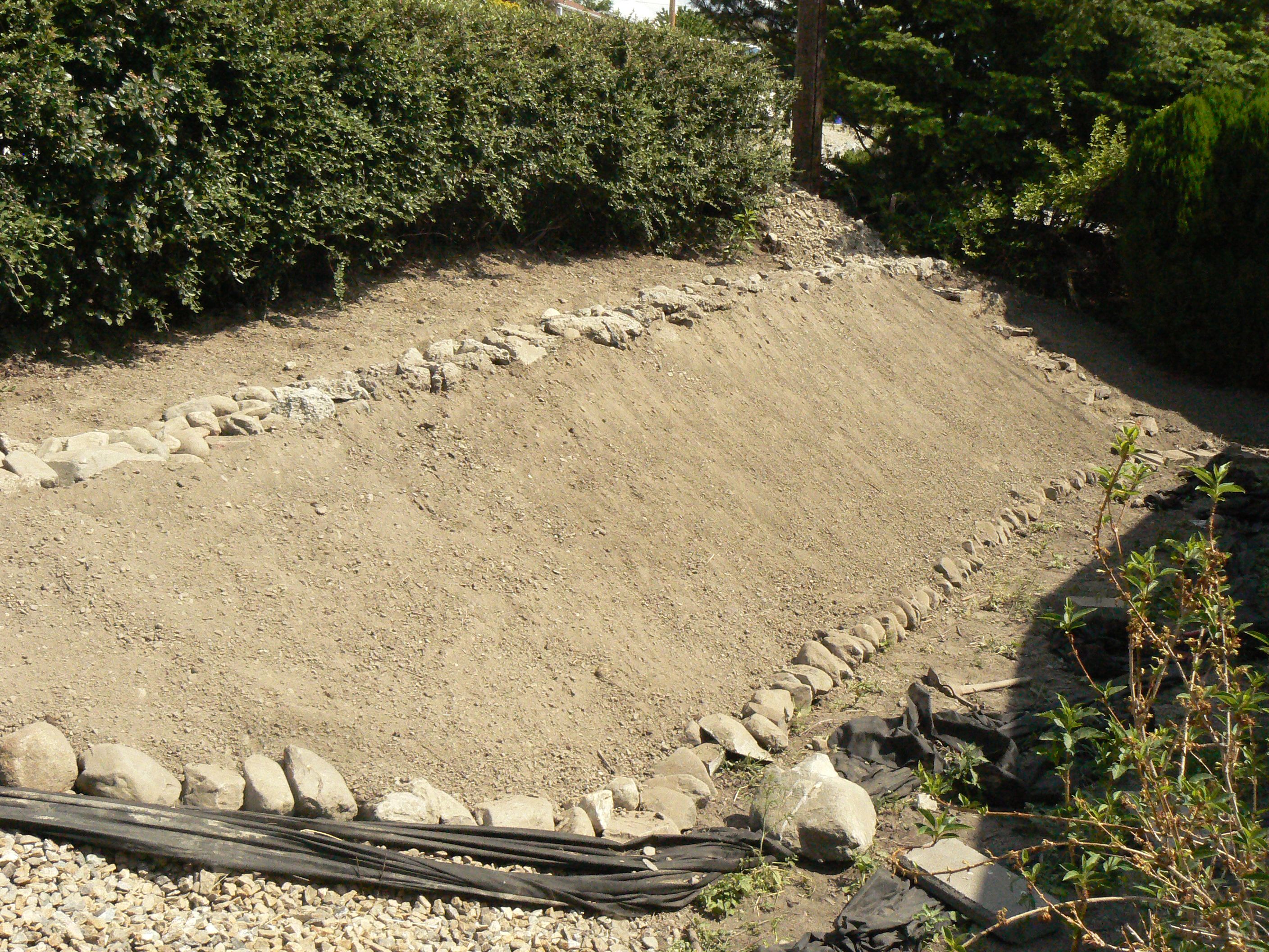 Notice that the vetch infection has been cleared away. The slope is close to stable now. Gravity is no longer a strong force in this system, even though it is only a year old.