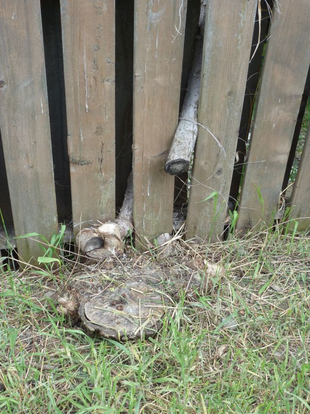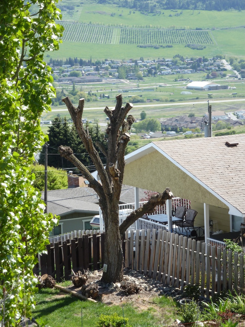 Note the blocks of wood with the branch stubs from the last pruning, and, oh, gasp, isn’t that the tire swing that used to swing there when the yard was full of children?