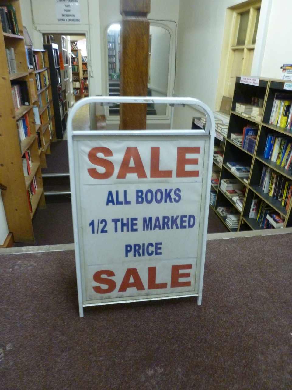 Just up the street, above a cupcake shop, there’s a bookstore that sags and sprawls its way halfway to the eighteenth century and back, proof that for 200 years humans have managed to forestall the death of the book by recreating it as literature. Deep in its entrails, you can find the future foretold…