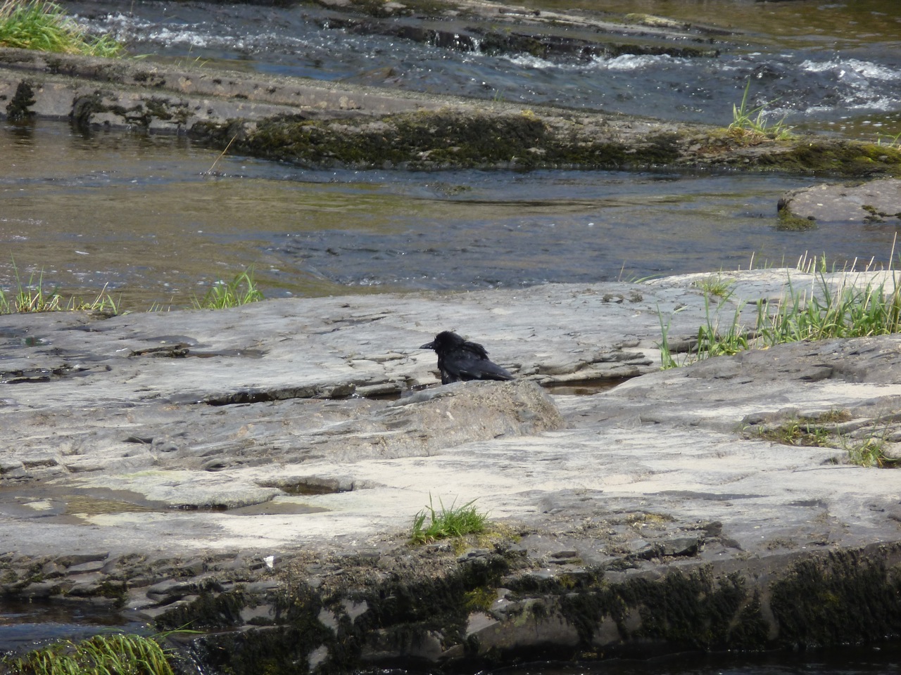 Just like the abbey, books have come to rest now. Humans are back in the spiritual world, physical spiritual creatures, dealing physically with physical spiritual stuff. Like our raven having a bath while a group of humans above had macaroni and cheese, clam chowder, and haddock and chips, all for their own reasons. Meanwhile, the story carries on…