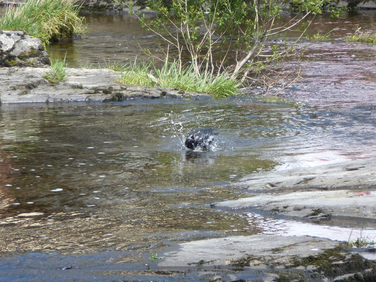 A little noontime wash does wonders, while underwater the young salmon watch, breathing the water they swim in.