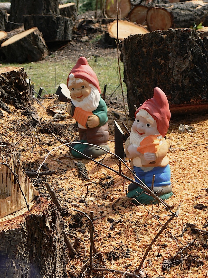 The trees went off to a furniture workshop. Then the gnomes had their work cut out for them, for sure. Try growing lettuces in that! Whew.