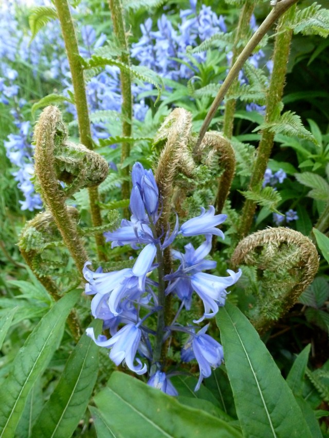 Sometimes I travel a long distance to learn what was always there speaking to me out of the world. In this case, it’s a trip to England, and flowers and ferns in my hotel garden and a sudden “aha!” about colour. To set the scene, let’s step out of the summerhouse and onto the grass, and let’s bend down…