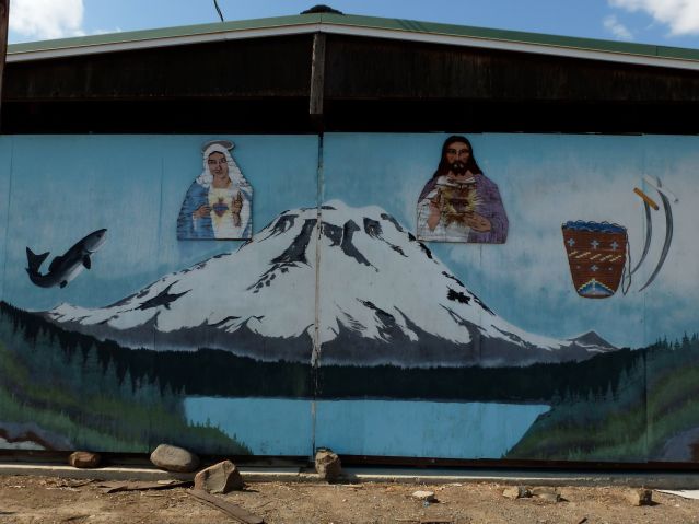 It’s got it all, including Jesus with his digging stick and Mary with her salmon coming home.