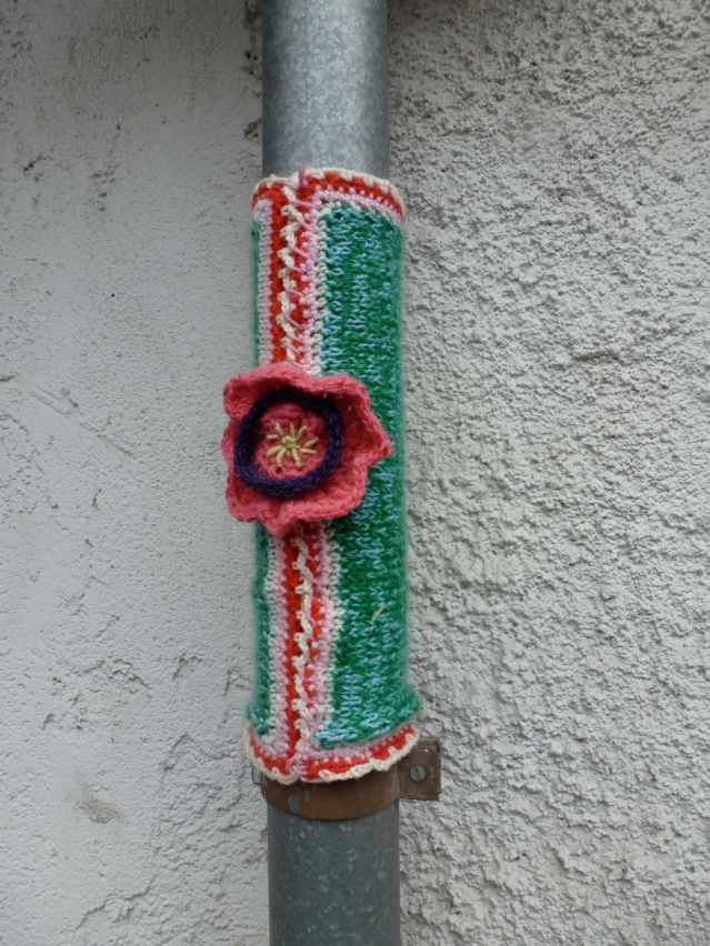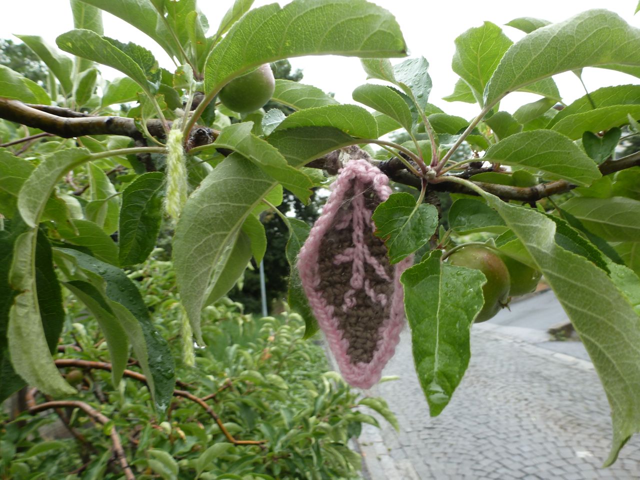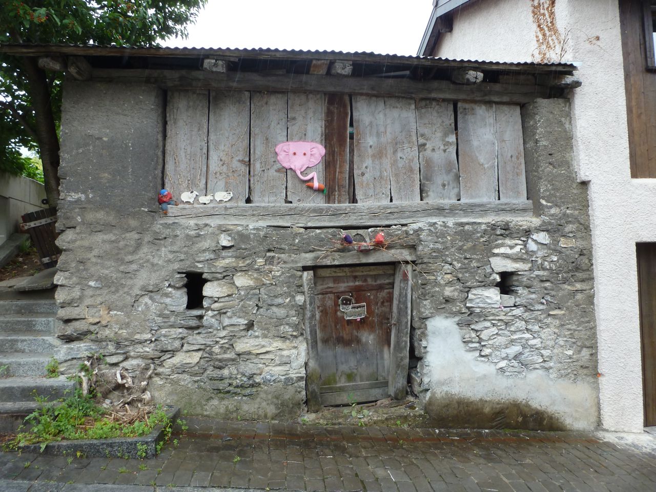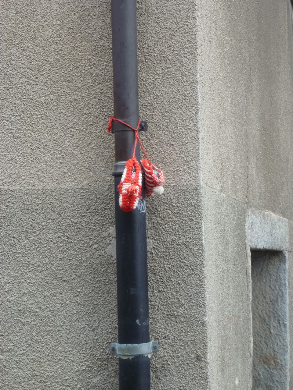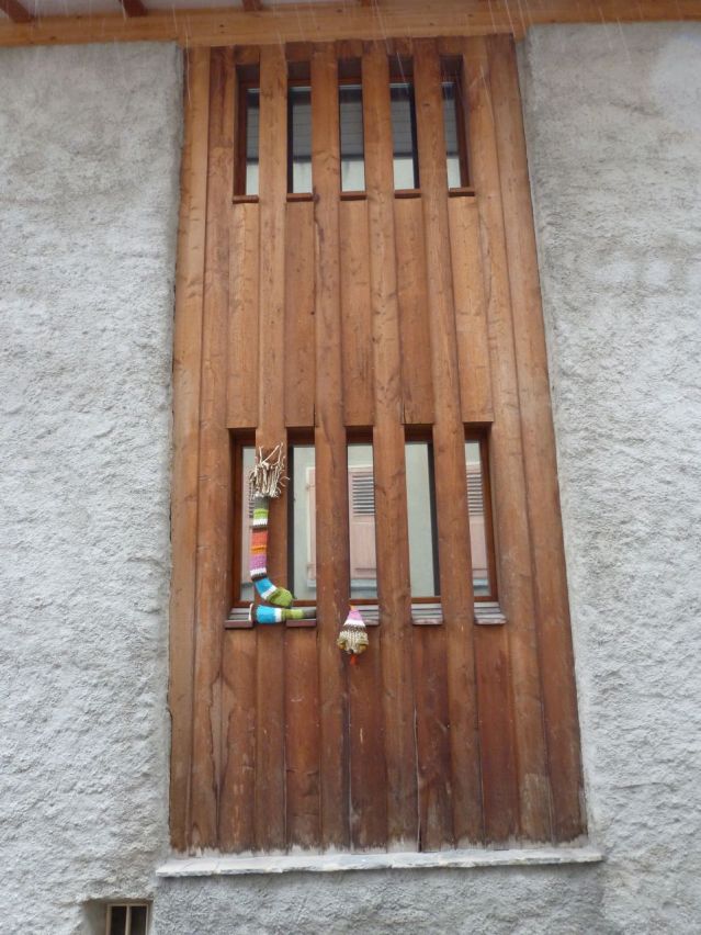 This tree was on a little street in Sierre, in the Swiss Rhone Valley, called Chemin des Moulins, which has been renamed, in bright wool, as the Rue d’Art. And Art is everywhere here…