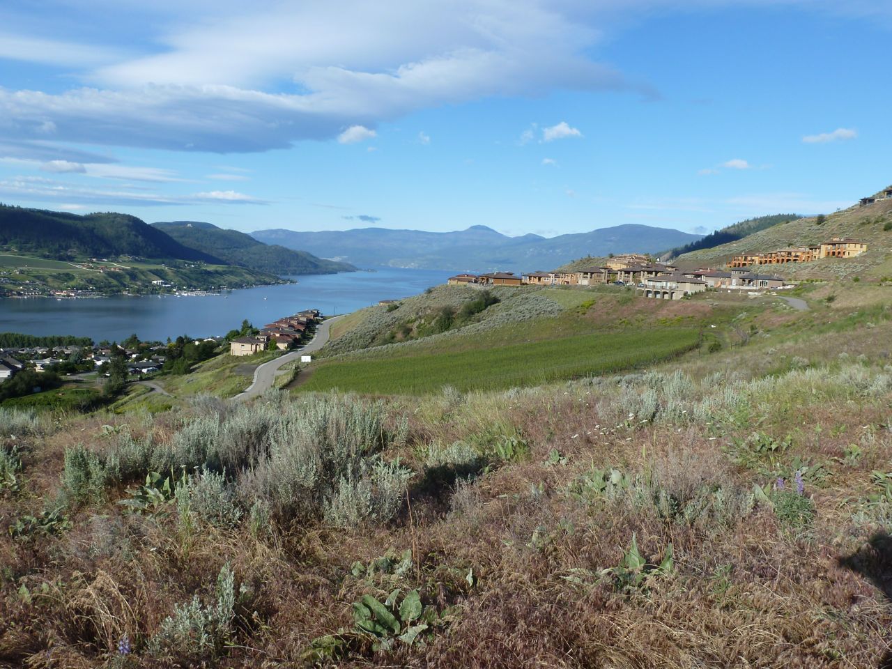Maybe this year the joke’s on the joker. It’s been a wet spring in the Okanagan. The normally brown hills are lush — long after even invasive cheatgrass should have turned brown. In this unusual year, a few other species are able to grab some water from the cheat grass universe. Here’s what it looks like if you turn away from the weeds and stinkbug above and look out over the community of Okanagan Landing towards the Commonage and the Okanagan Mountains, blue in the distance.