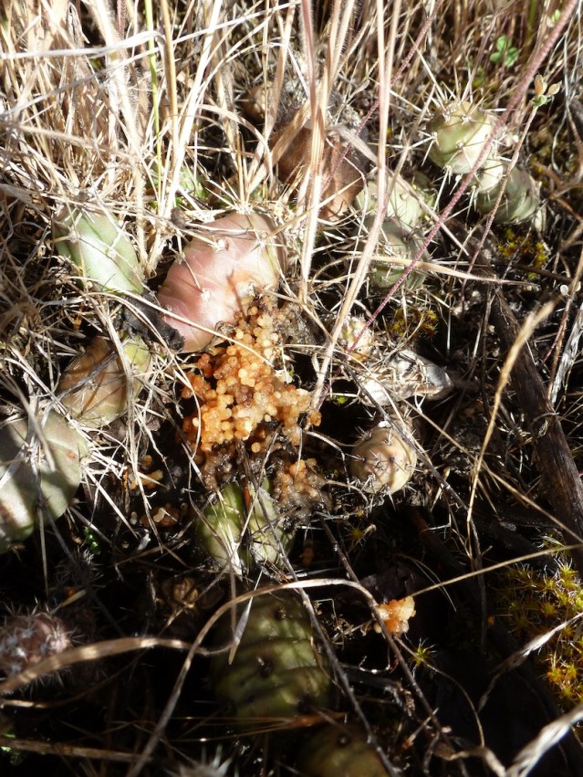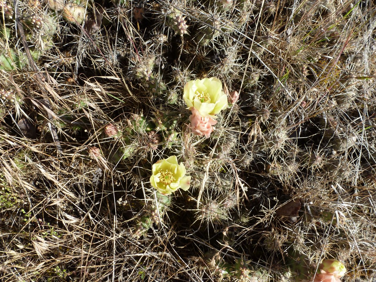 Some of the prickly pear’s flowers were yellow, some pink. And usually that would be that, but while people go about their business in the valley bottom and the grasslands are ignored, cheat grass has been moving into this dry environment and rooting in the small amounts of dust that collect underneath the cactus. In this situation, cheat grass acts as a sponge, trapping water right there where the rock should carry it away, and…