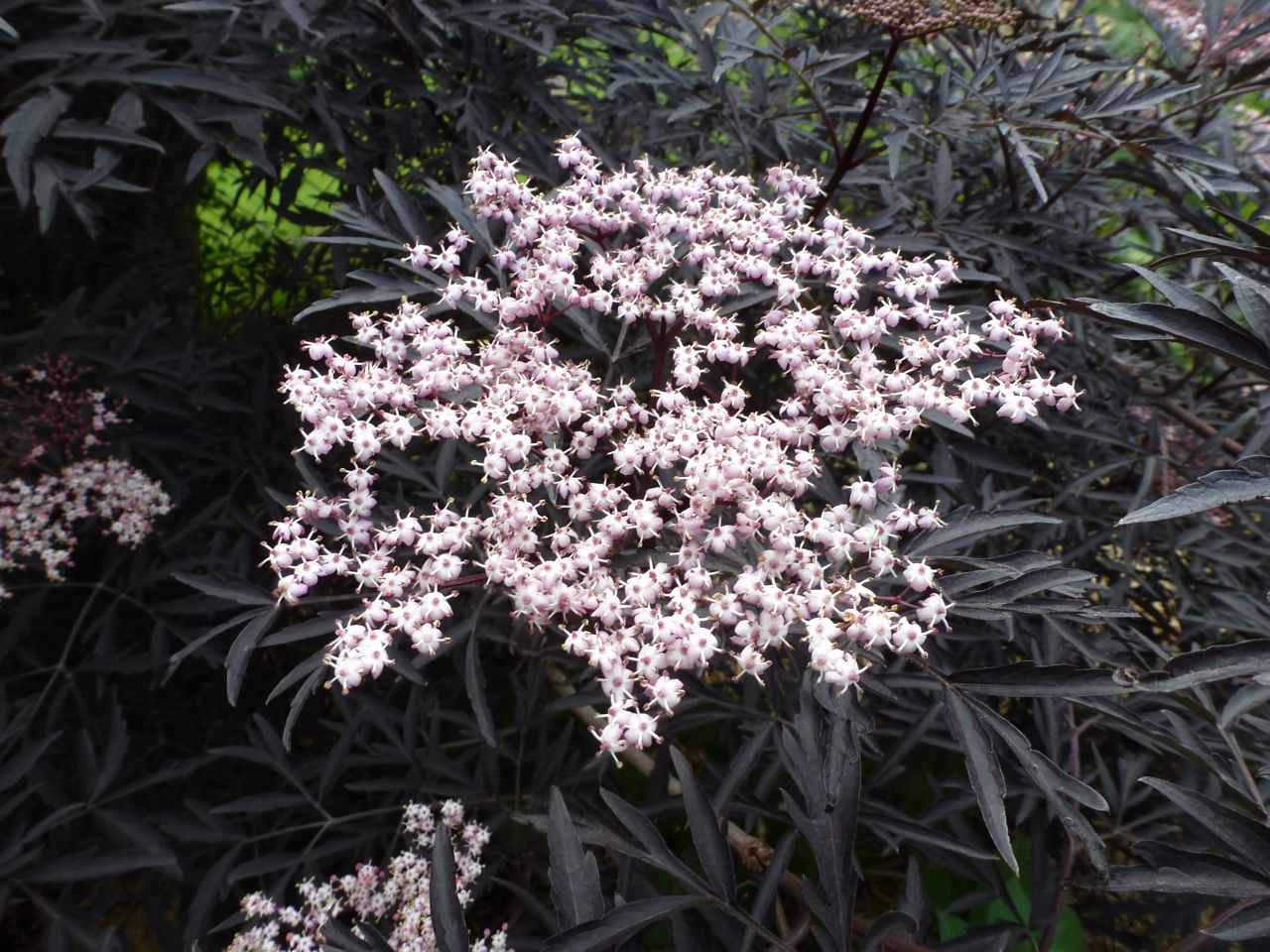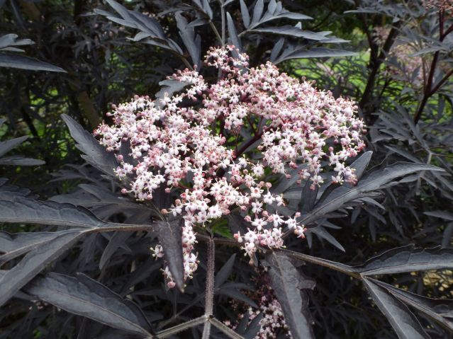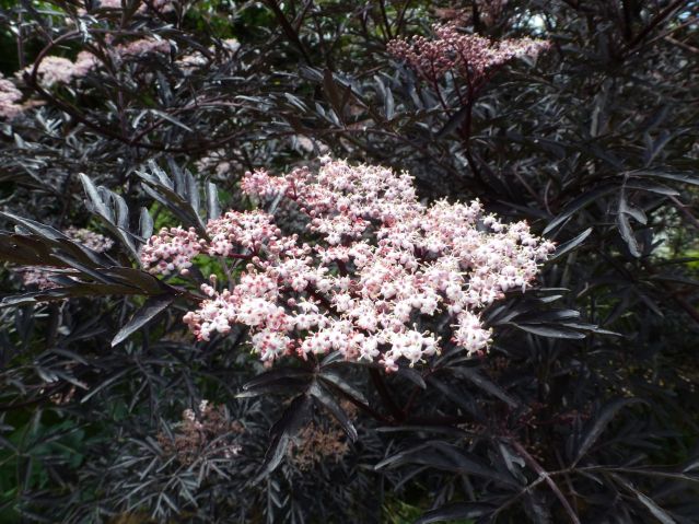 How about becoming a bee? Would that be nice? And you can! Rather than wait for berries and be a, gasp, wasp, with zing and a sting in September and people hanging bags of water over their doorways to try and keep you away, you can dine on elderberry flowers in June and even beat the starlings to it. Here’s the bush that’s scenting up my yard and making me buzzzzzzzzzzzz…