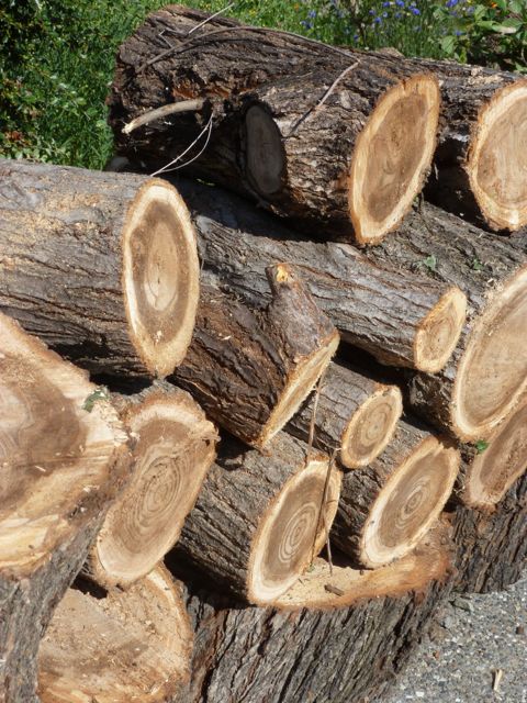 Elm wood waiting to be hauled to the back yard, and smelling like wine.