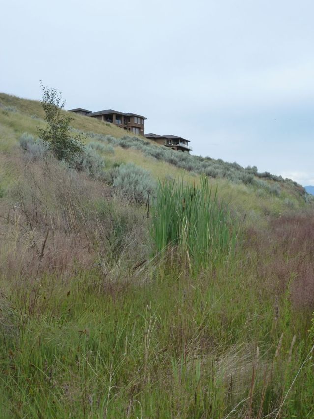 One consequence of shifting the water collection system of the grassland up from its base is that a section of grassland is cut out of the water loop. For example, the grassland below this wetland is largely non-functional in this new system. It sports only a weedy ingrowth of houses.
