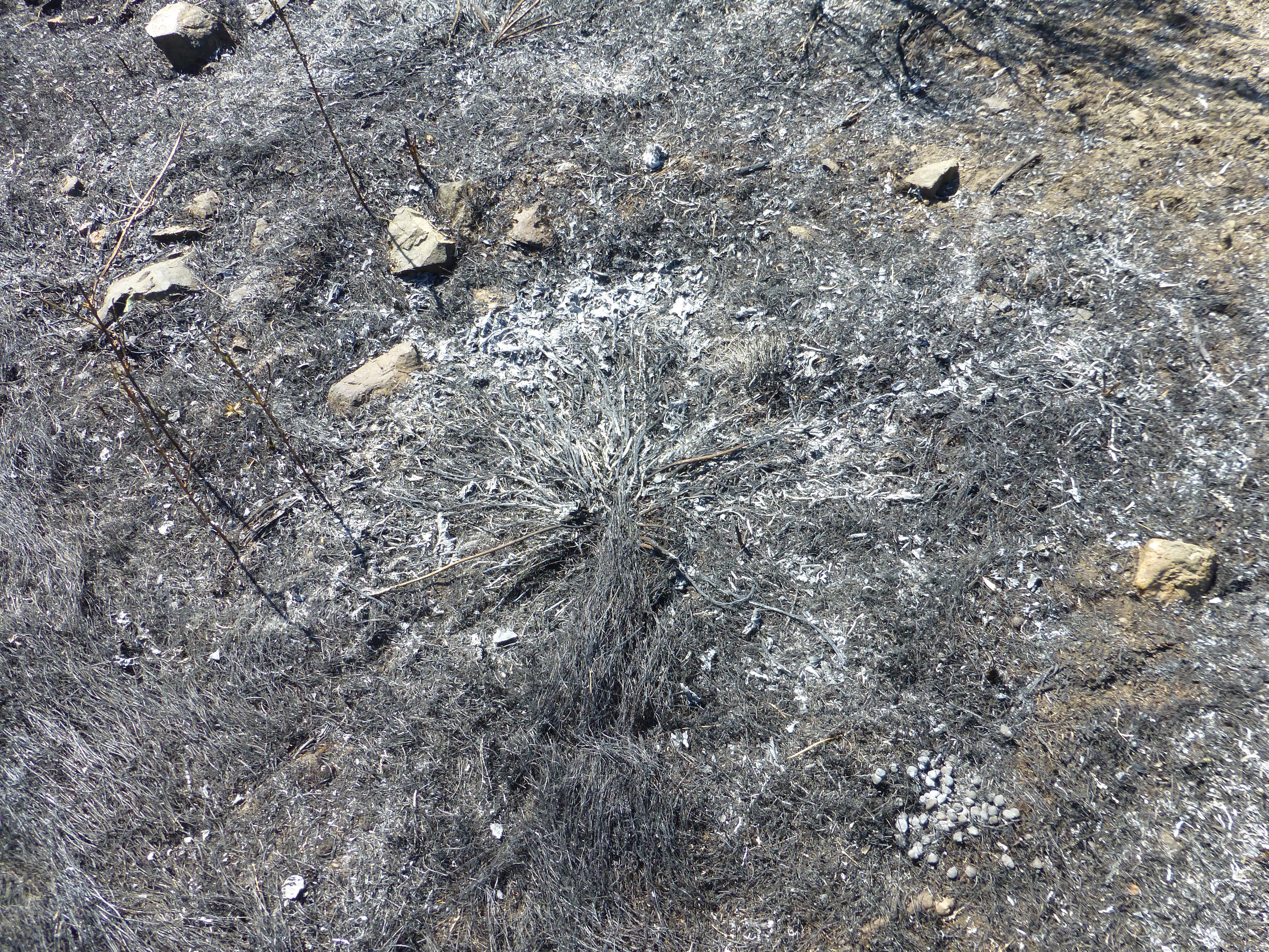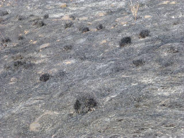 It’s been three days since the fires. Some of the tan-coloured vole hills here are new. All the rest were rather untouched by the fire.