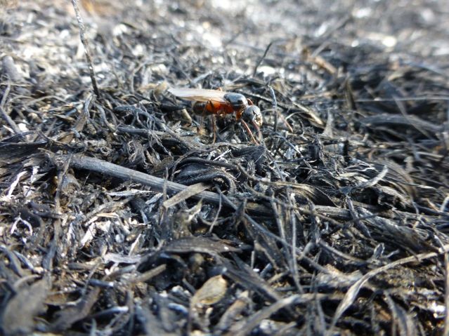 Remember that fire? Grass burnt to the end of its story a couple weeks back? Only living thing left a few grasshoppers deep into the first stage of the grieving process and soon to move on? Well, the story has changed. The colonists have arrived. The clean-up crew is here.