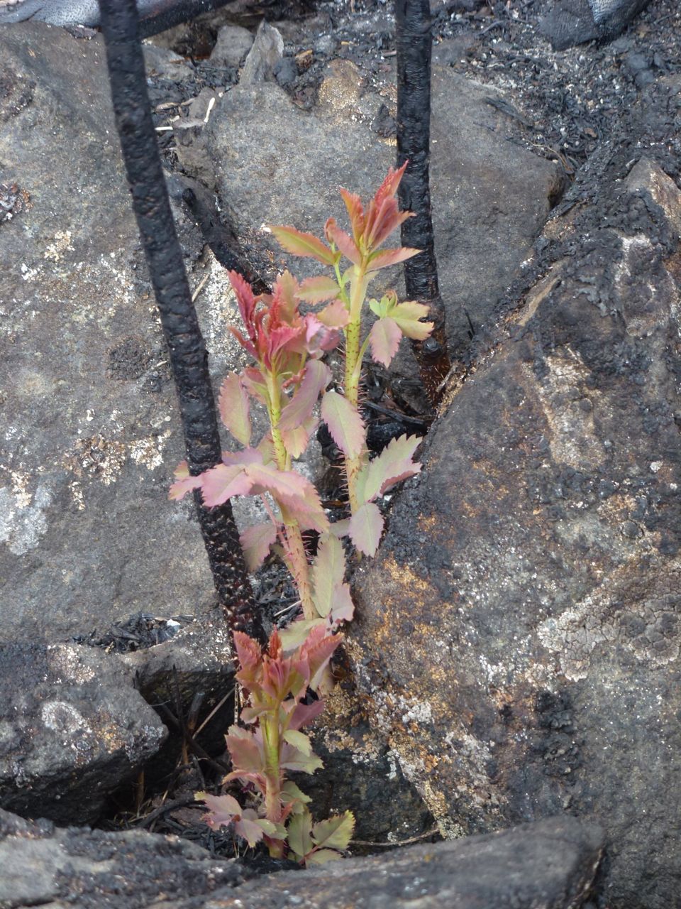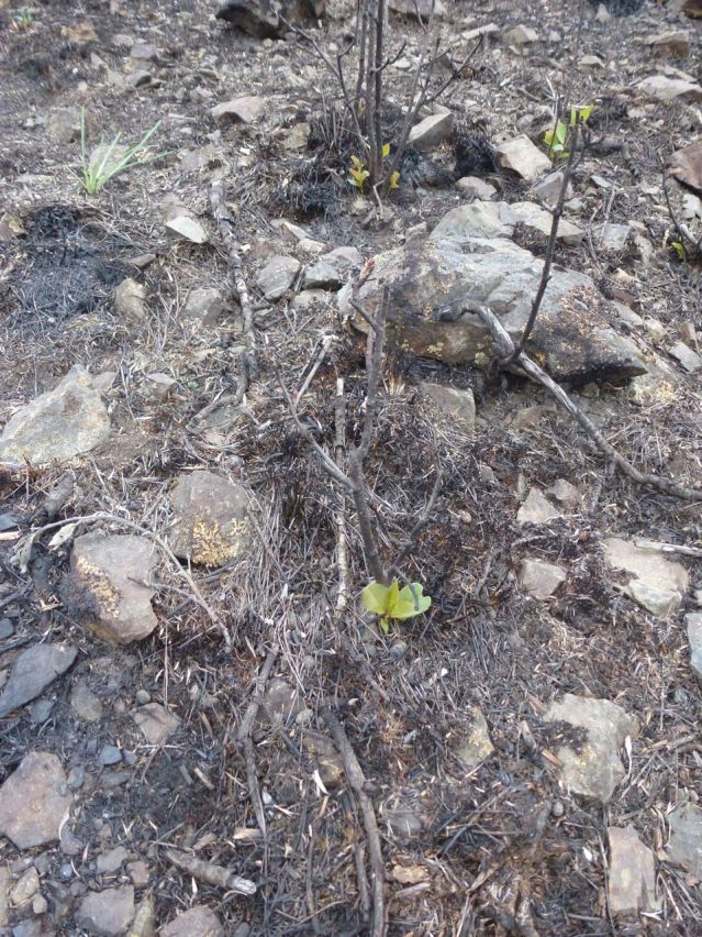 This isn’t regrowth from root reserves. This is seed, fed from one thunderstorm a week ago. The fire must have just blown over the top of these seeds while they did their la-de-da.