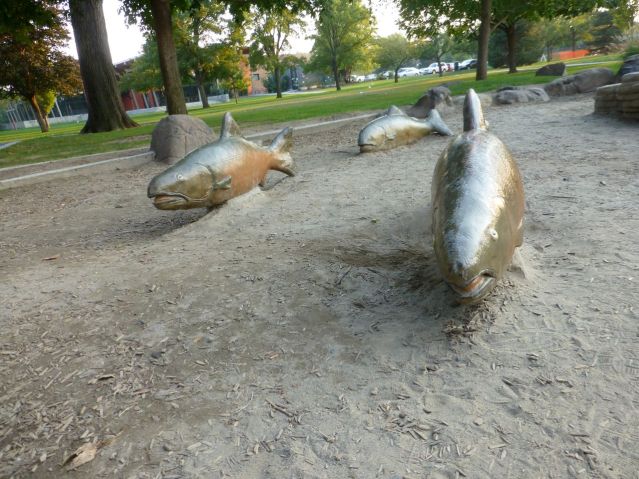 Creating a splash of green for human visual pleasure while humans, in their automobiles, pass at speed. This type of movement is akin to the operation of ski boats and personal watercraft on the impounded river.