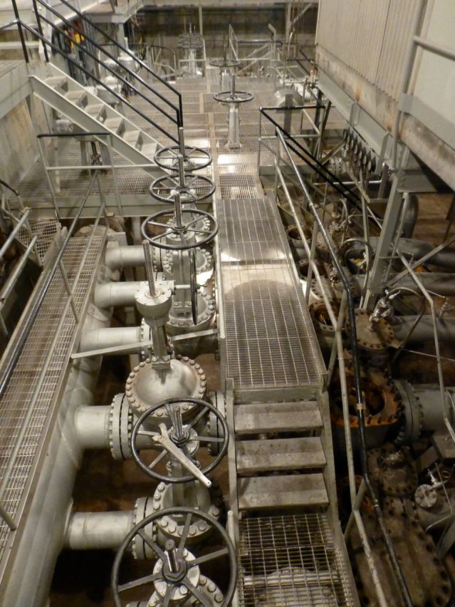 In this form, a river is moments away from being brought close to boiling temperature as it runs through ‘the girl’ and back into the river. This is another word for ‘power’. Notice the caps left off of valve assemblies at the right, as part of the nuclear nonproliferation treaty.