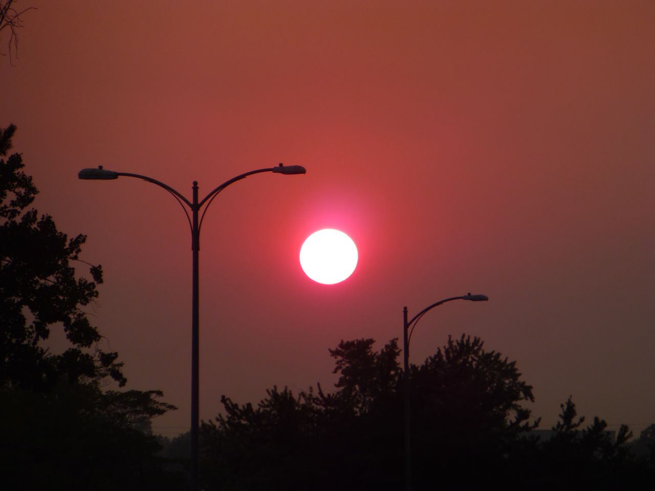 With the sun burning through a haze of burnt forests hanging in the air. Again, this is the same universe as in the images above.
