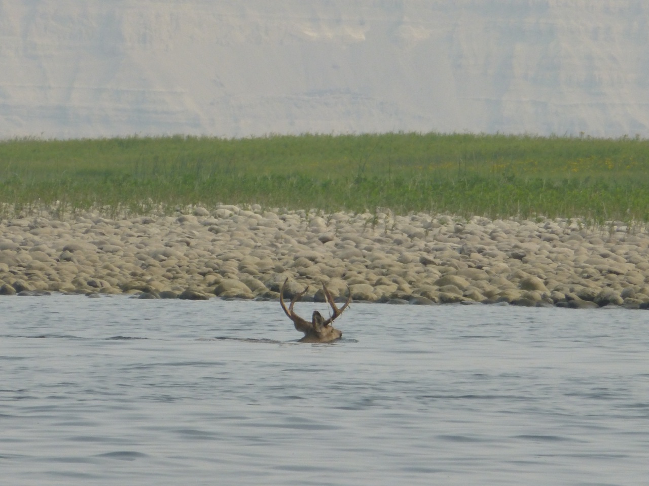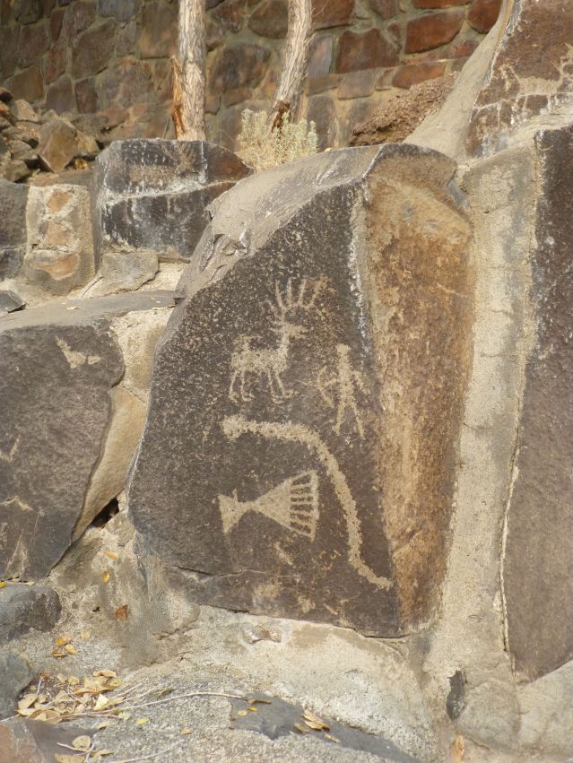 I consider the capture and killing of increasingly rare and ancient animals for sport to be rogue behaviour, not befitting membership in the earth community. Compare this to a representation of an elk / human interaction by the original people of the river, who lived on the sites above…