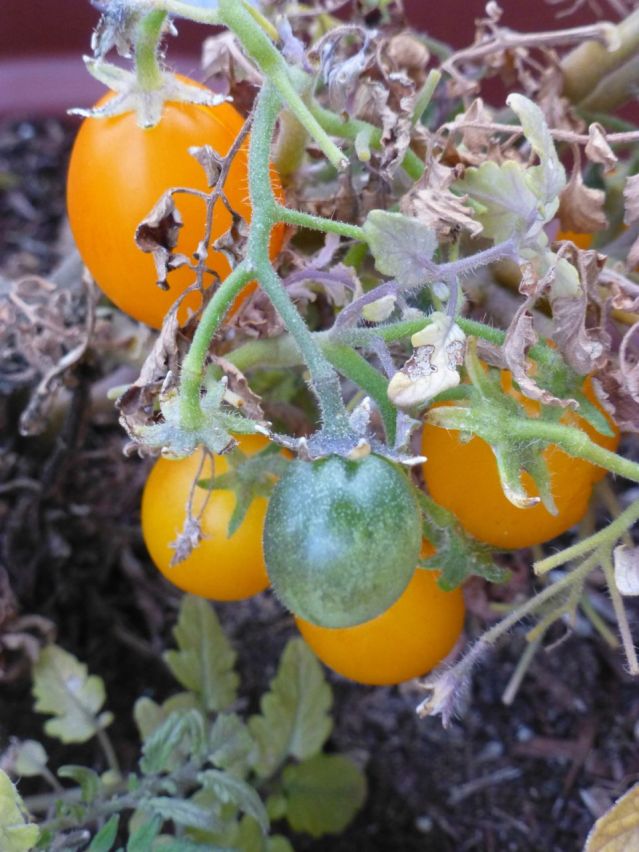 This is why heat-loving foreign plants like tomatoes can be supplemented in this landscape by ones that like the cold and think the heat is bad news, like this: