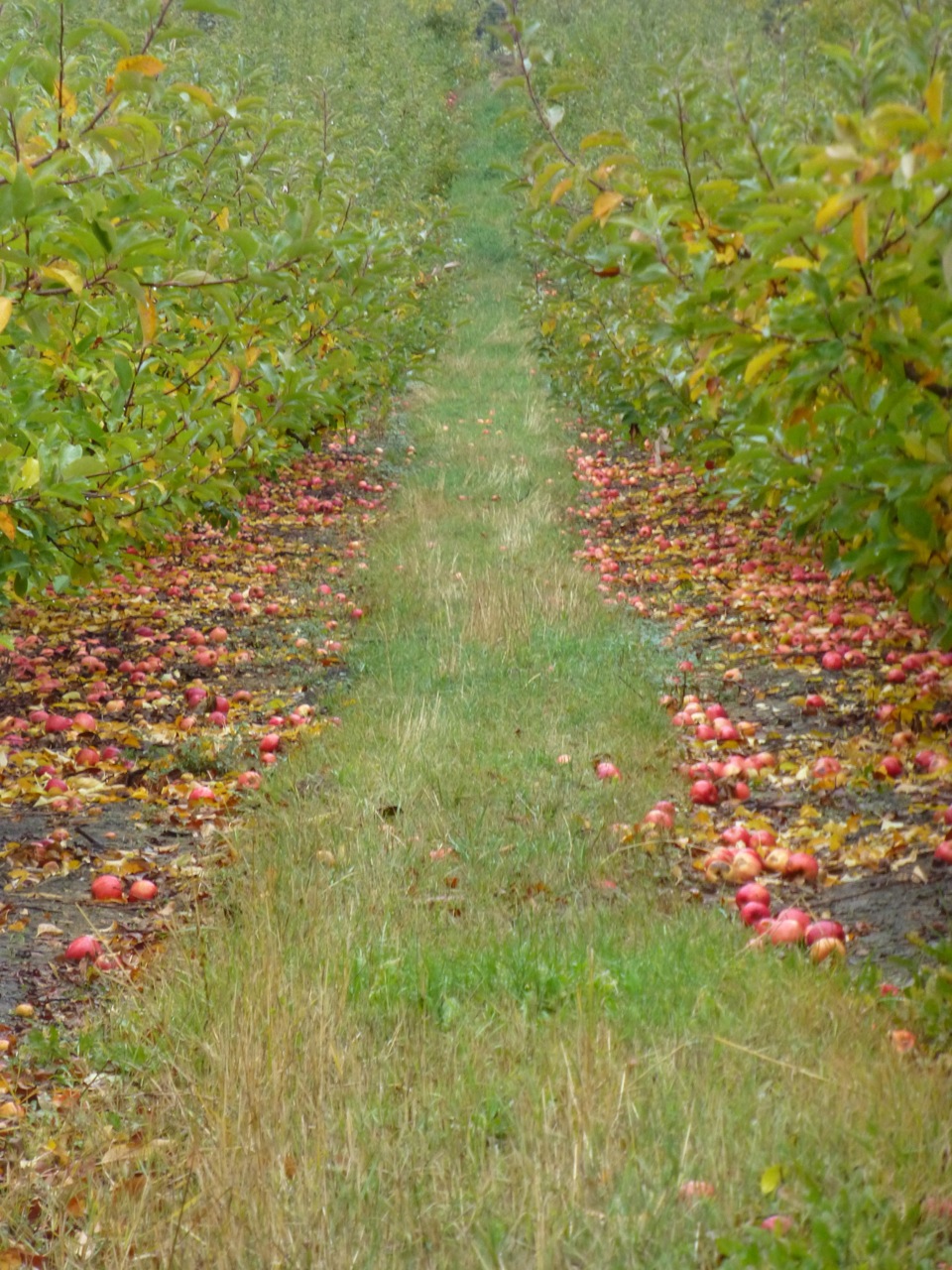 The tree with yellow leaves has only a short time left. Trees like this were planted in the 1980s, with the expectation of hysterical profits over a ten year life, before they were replanted with yet newer luxury varieties. Economic realities meant that didn’t happen. They linger on, in both slow physical and social decline. To compensate, more and more apples are discarded on the ground every year.