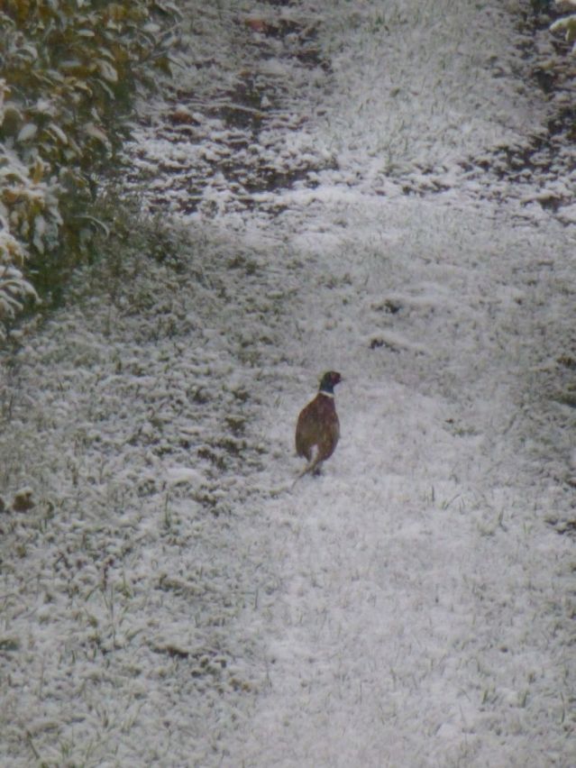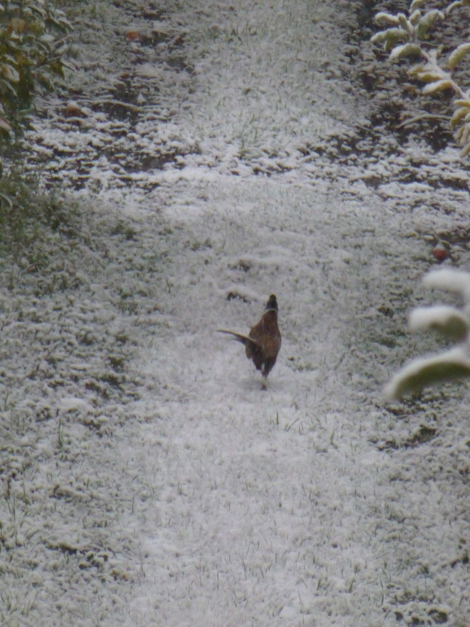 1. I can smell the snow in Okanagan,I see pheasant guy having a morning walk ,and am surprised to see how nature is all the same around the globe, there are no orchards around my house, but pheasants do walk just the same in the woods nearby…..