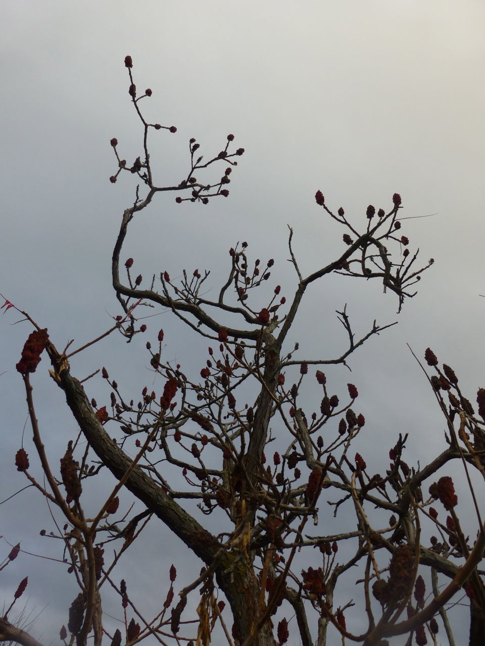 All summer long, the sumacs have trickled away the energy of the sun and reconstituted it in elaborate photographs we call fruit clusters, which they hold up to the sky. Eat that, James Cameron.