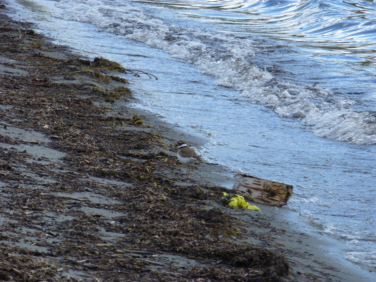 Sandpiper Wandering Through a Maze of Lakeshore Crap