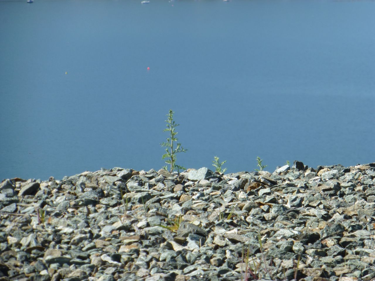 Here’s how the earth came to be dying up the hill. An investment company hoping to transform a section of living earth into a piece of “land” which could be sold socially blasts it to bits to make roads and building lots. Now that a rare remaining grassland was a part of social life and no longer a part of the living earth (it was now “land”), the company could sell it as a cost to society. To make this cost as large as possible, a vineyard was planted. Its presence made the earth around the development seem like a piece of Provence (a social image) and the “land” seem like a piece of New Mexico (a social image of a hot place). These attractive social ideas were incorporated into the architectural and landscaping plans of the development. They had the potential to increase the land’s cost to society, which would then be private profit for the developers. For complex reasons to do with global economic factors, a collapsed real estate market, and so on, the development went bankrupt. At that point, the final phases of the vineyard development were abandoned, although the sagebrush and native plants had already been scraped off of them and piled up to the side. In other words, it had already been transformed from life into “land”. At this point in the development of a piece of living earth into a monetary engine, the project’s capital investment was written off, and the developers moved on, free of encumbrances. Well, almost. They left behind a life-debt, from the earth’s perspective, and a creative debt. Here’s what the creative debt looks like: