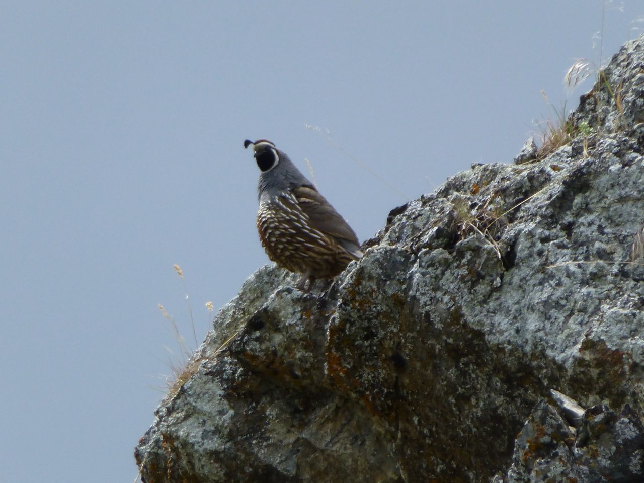 California Quail (introduced species, so humans would have something to hunt), blending in …