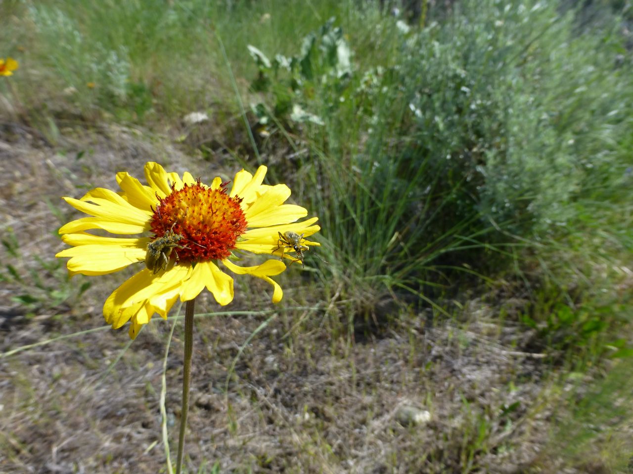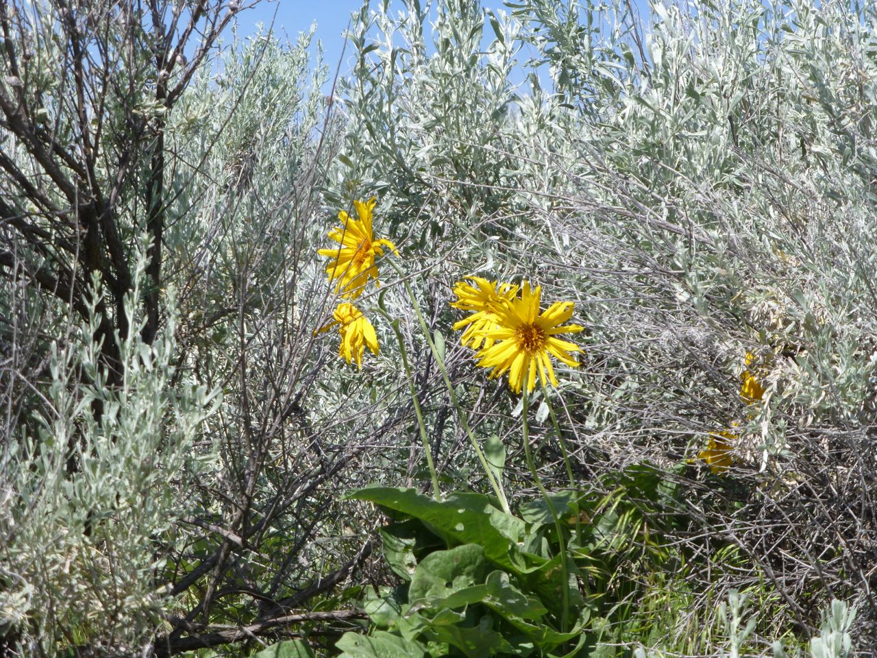… is not separate from the rose. These creatures became a community here, and formed in each others’ image. It’s a powerful predatory idea, to cut across that community and make a new arrangement of individual species evolving individually in a highly-competitive environment, and to call that evolution, but it’s really a form of poverty. There are individuals, but without the community, there is only entropy. There are many plants upon the grasslands. They compete for resources, certainly, yet they also support each other. It’s not the species that are the life here, but the community of species. An individual plant makes oxygen for a few weeks, then sinks into the dry soil. Another plant takes over, adds a bit more oxygen, then sinks away as well. Plants extend their range, by location up and down the slopes and by variation within their species, like this balsam root, blooming a month late…