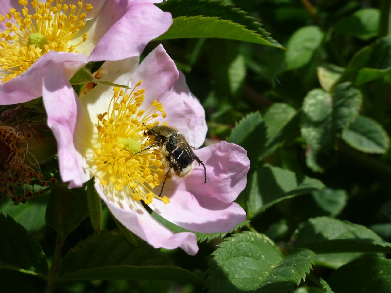 … can be separated from its rose, but if it doesn’t have some yarrow, another member of this community, it’s likely not going to make it. Similarly, this beetle, which is very close to being a bee (like, verrrrrryyyy close) …
