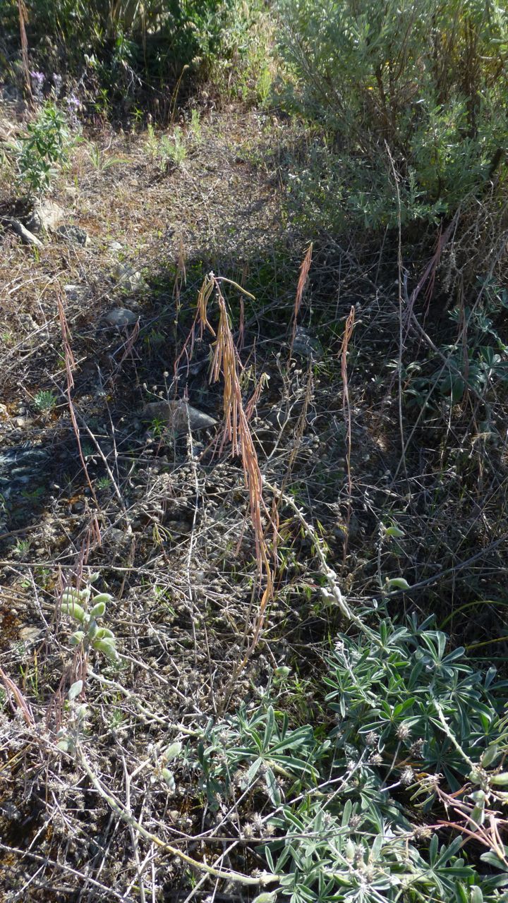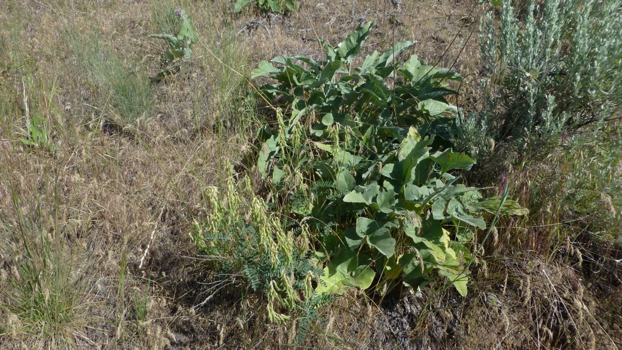On the lower elevation grasslands in the Okanagan, cheatgrass, an imported weed, has replaced the blue-green algae of the soil’s crust with mats of old, matted growth off-gassing carbon dioxide and limiting plant opportunities, thereby wildly increasing entropy and helping humans kill the planet. However, even in the community of weeds that is replacing the community of the ancient earth, certain entropy-negating processes are still active. The multiple seasons of cheatgrass growth above are one example. Here, on a patch of ground opened in the cheatgrass by voles, where the new weed community is practicing resilience in time, is another.