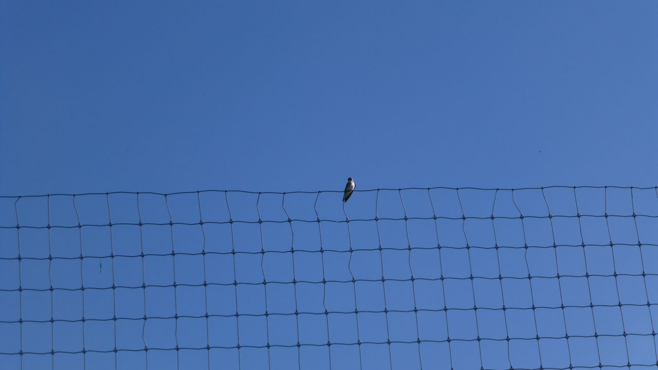 Our fences can’t hold it, nor can they hold the Western Kingbird that uses it, because to him fences are excellent perches for hunting insects, which he does out in that blue. Look again …