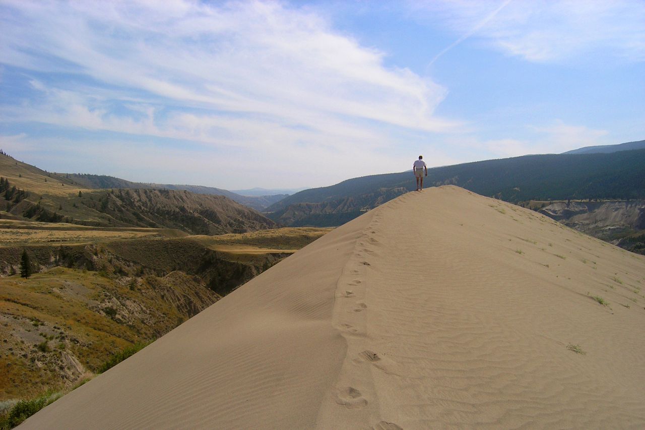 And here’s a view from the lip of British Columbia’s largest sand dune, the Farwell Canyon Dune, formed by depressurized and repressurized Pacific Ocean air blowing up the hoodoos of the remnants of the silt bed of Glacial Lake Fraser.