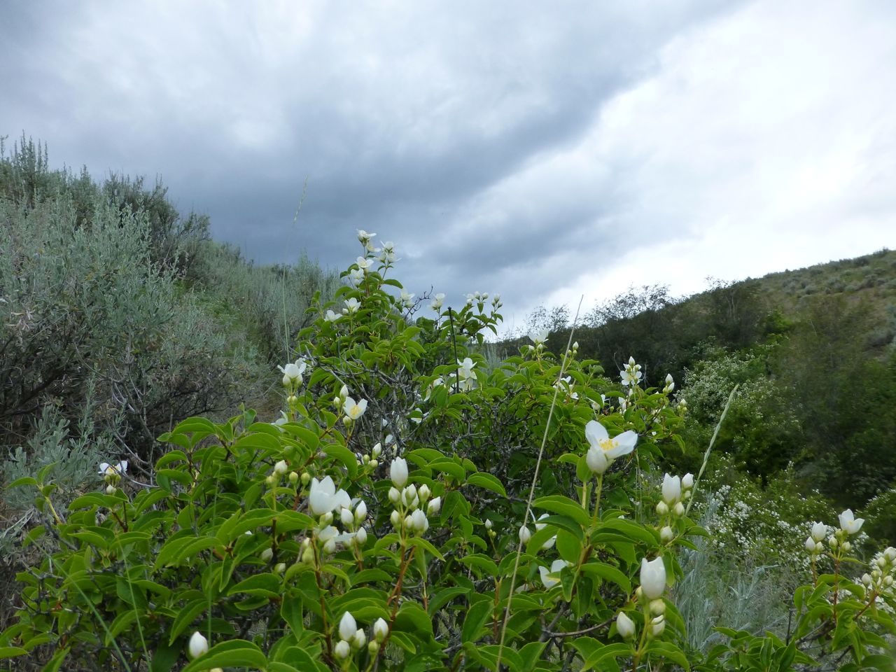 In this model, the runoff from the hill percolates through fine, aerial silts left from the draining of Glacial Lake Penticton. An even community of voles, bunchgrasses, pigweeds and flowering and tuberous plants thrives here. Just to the north of this plot, where the slope drains onto the mountain’s saddle, a rich community of berry-bearing plants has established itself. One of Vernon’s so-called homeless people has made a summer home there, on an old mattress in the shade of a saskatoon. I caught a white-tail doe relaxing on it one day. Good on you, girl!