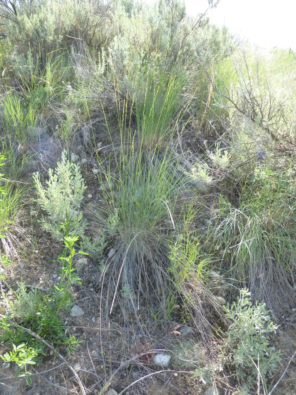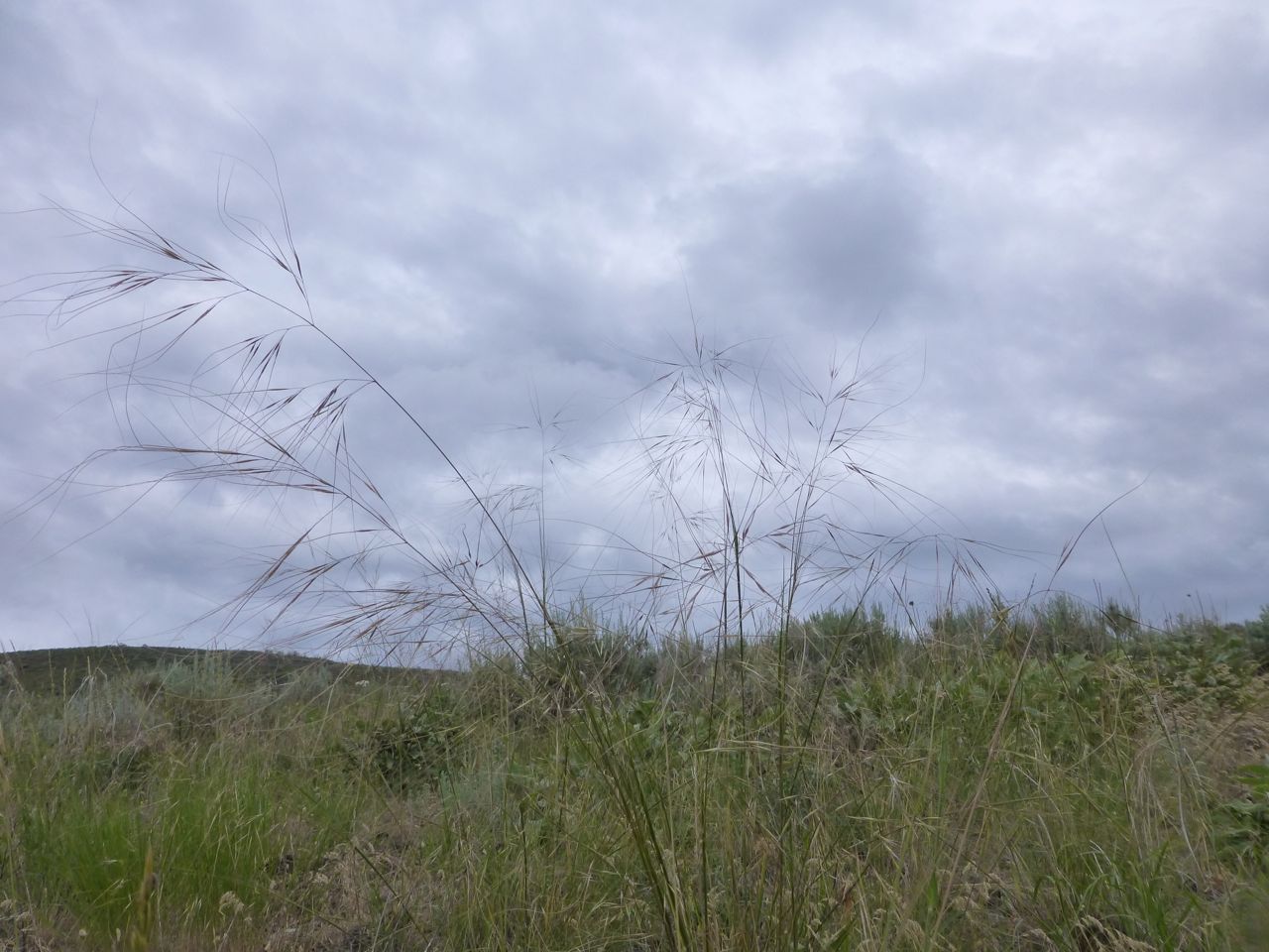 This is the signature grass of the West. It’s a very fine-leafed grass that grows very woody flowering stems that last for a couple seasons after they have died back in the late summer. The typical brown August hills of the grasslands take on their colour from these stalks. It’s not that the hills are dead, however. The stalks fan out in a cone, catch rain water, or even dew, and drop by drop funnel it down to the lush green leaves at the core of the plant.