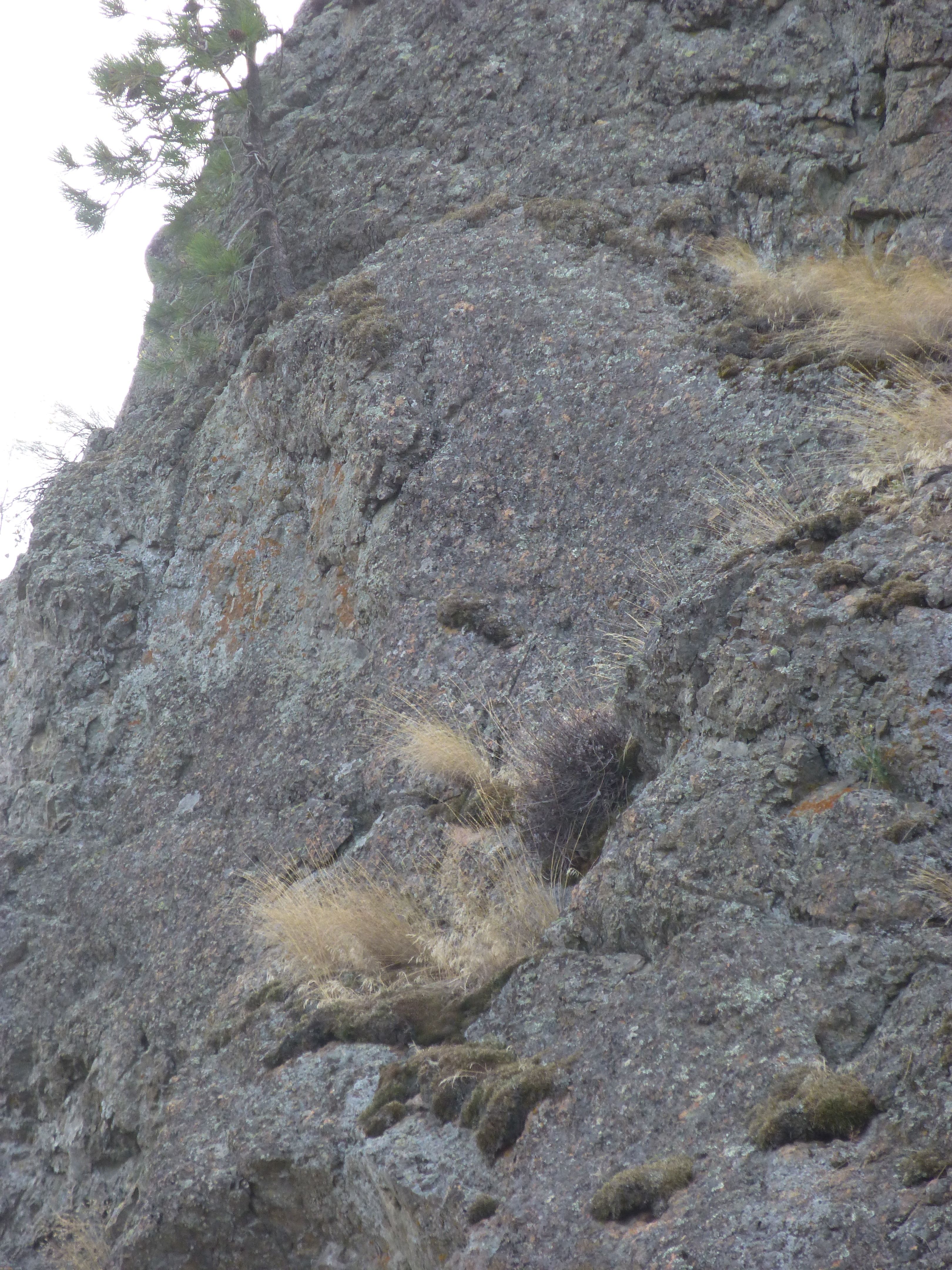 The bunchgrasses here don’t have enough soil to survive, but they can because the stone above them contributes the water that enhances the actual soil volume.