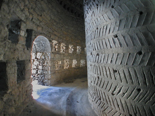 This main channel also served as an access channel, large enough for workers to enter and clean out any debris that might be blocking the water flow. Below is a look inside the channel. The light that you will see in the image comes from more recent wells sunk into the roof on the site of the villa itself, at intersection points with the side channels feeding water in from the Qanat network.